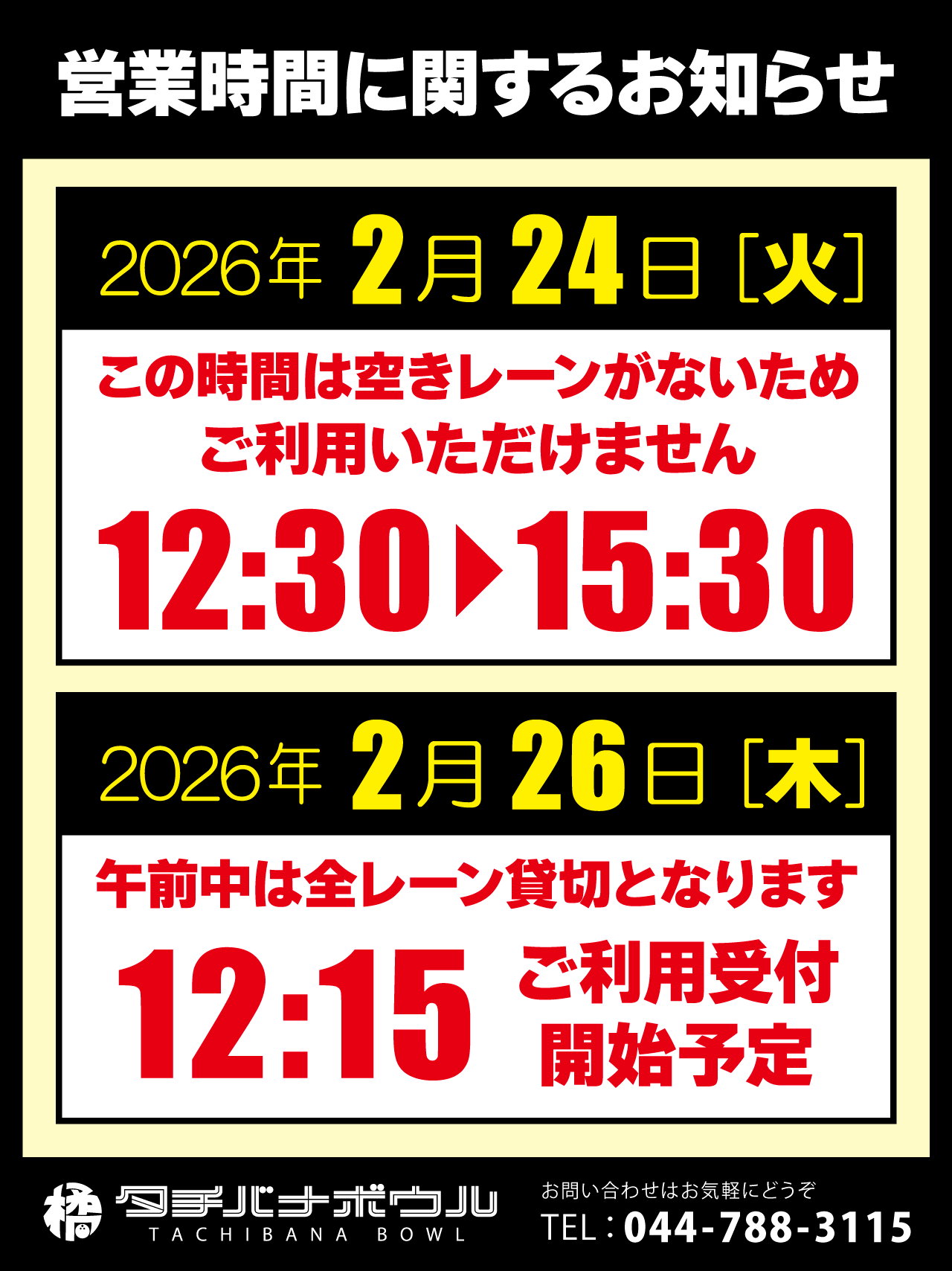 2026.02.14- 2026年 3月のボウリング教室の予定を変更しました。※3/23はお休みになりました
