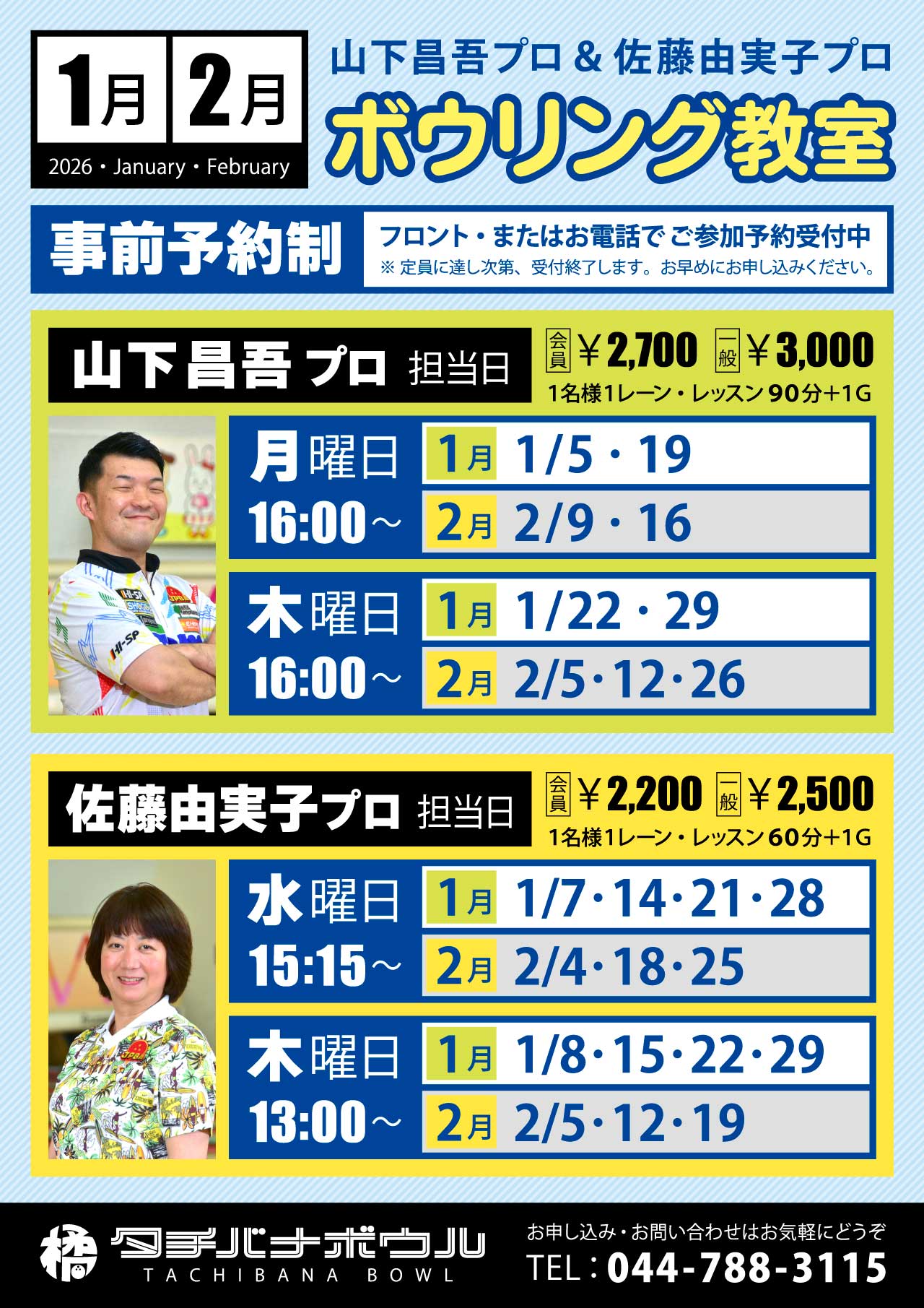 2026.01.27- 2026年 2月のボウリング教室の予定を変更しました。※2/19はお休みになりました。
